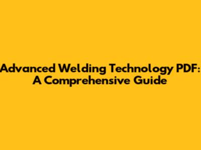 Advanced Welding Technology PDF: A Comprehensive Guide