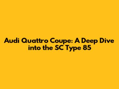 Let's dive deep into the iconic Audi Quattro Coupe SC Type 85. For car enthusiasts and those passionate about automotive history, the Audi Quattro Coupe SC Type 85 is more than just a car; it's a symbol of innovation, performance, and rallying heritage. This article explores everything you need to know about this classic vehicle, from its design and engineering to its historical significance and collectibility. So, buckle up and get ready for a thrilling ride through the world of the Audi Quattro Coupe SC Type 85!