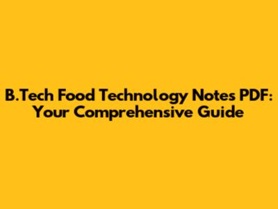 B.Tech Food Tech Notes: Your Free PDF Guide
