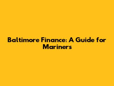 Baltimore Finance: A Guide For Mariners