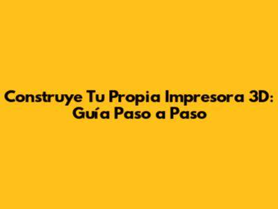 Construye Tu Propia Impresora 3D: Guía Paso A Paso