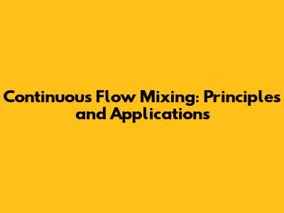 Continuous Flow Mixing: Principles And Applications
