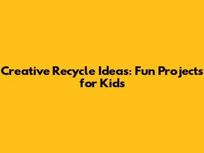 Creative Recycle Ideas: Fun Projects For Kids