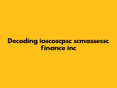 Decoding Ioscoscpsc Scmassessc Finance Inc