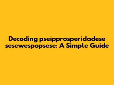 Decoding Pseipprosperidadese Sesewespopsese: A Simple Guide