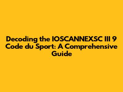 Decoding The IOSCANNEXSC III 9 Code Du Sport: A Comprehensive Guide