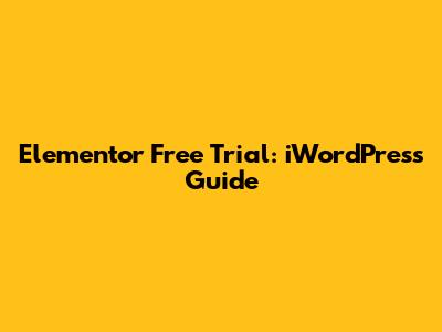 Elementor Free Trial: IWordPress Guide