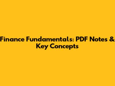Finance Fundamentals: PDF Notes & Key Concepts
