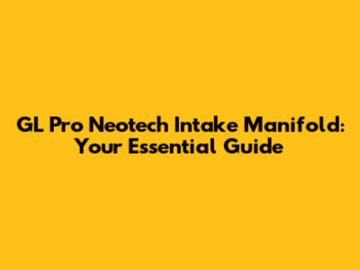 GL Pro Neotech Intake Manifold: Upgrades & Troubleshooting