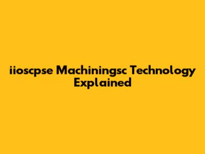 Iioscpse Machiningsc Technology Explained