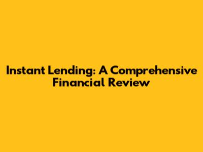 Instant Lending: A Comprehensive Financial Review