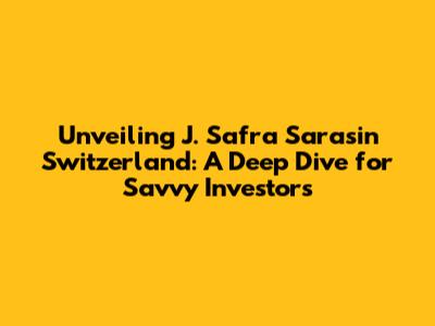 Unveiling J. Safra Sarasin Switzerland: A Deep Dive for Savvy Investors