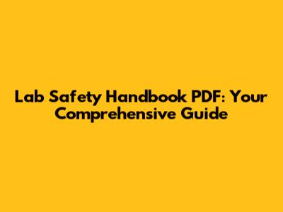 Lab Safety Handbook PDF: Your Comprehensive Guide