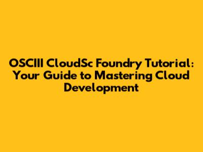 What is OSCIII CloudSc Foundry? ๐Ÿค”