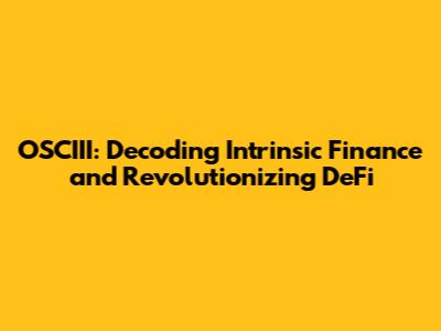 OSCIII: Decoding Intrinsic Finance And Revolutionizing DeFi