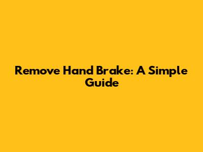 Remove Hand Brake: A Simple Guide