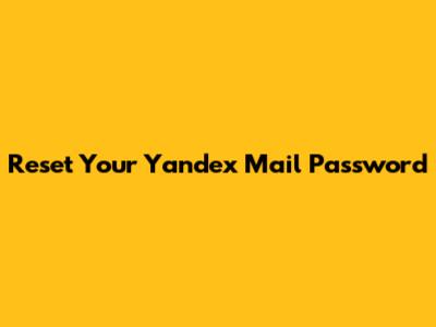 Reset Your Yandex Mail Password