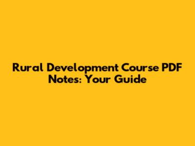 Rural Development Course PDF Notes: Your Guide