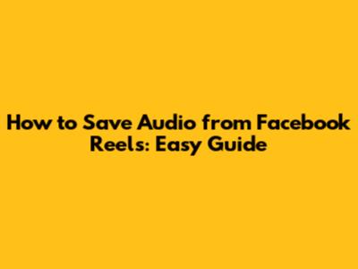 Save Audio From Facebook Reels: Easy Guide