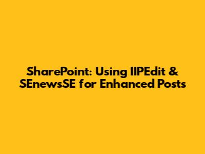 SharePoint: Using IIPEdit & SEnewsSE For Enhanced Posts