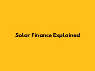 Solar Finance Explained