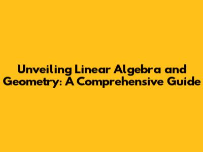 Unveiling Linear Algebra And Geometry: A Comprehensive Guide